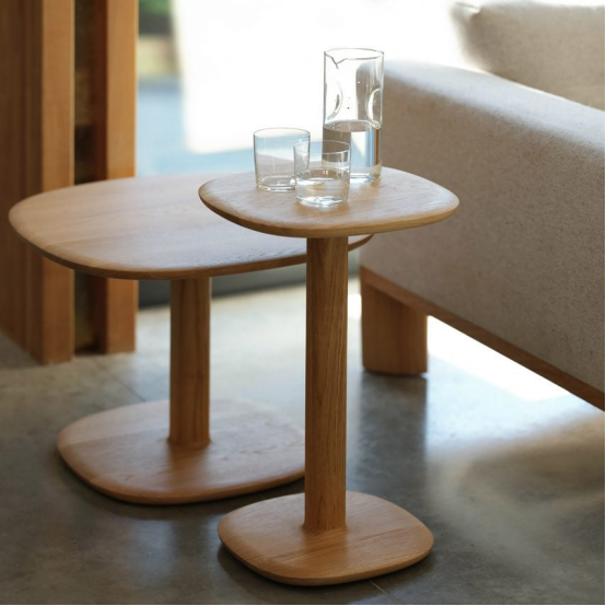Nami 桌子?提供多種尺寸與顏色可選,包括突出木材美感的自然飾面。用戶可選擇火焰橡木、坎納萊托胡桃木或黑蠟木等材質。