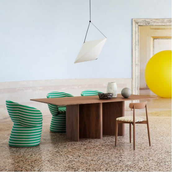 意大利工作室?E-ggs?為設計品牌?Miniforms?打造了一系列桌子,其標志性元素是以實木蒸汽彎曲工藝制成的波浪狀底座。