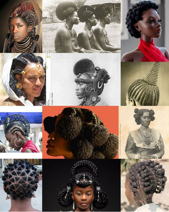 幾個(gè)世紀(jì)以來(lái),黑人的頭發(fā)一直是身份與社會(huì)階層的象征。在前殖民時(shí)期的塞內(nèi)加爾(非洲),發(fā)型常常能夠輕易地顯示一個(gè)人的民族、年齡、婚姻狀況或生育能力。據(jù)信,被奴役的非洲女孩和婦女曾用她們的玉米辮作為一種傳遞信息的溝通工具。2021年,《Vogue》刊登了一篇文章,介紹了埃塞俄比亞裔美國(guó)藝術(shù)家瑪麗安·梅雷巴(Marian Mereba),她分享了自己的頭發(fā)歷程,以及如今如何在自己的音樂(lè)視頻中將頭發(fā)作為一種敘事工具。