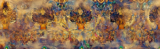 妝飾即傳承。我的生成式AI藝術(shù)作品從文化遺產(chǎn)、歷史元素、工藝技藝和傳統(tǒng)中汲取靈感,創(chuàng)造出諸多深入文化血脈并融入個(gè)人體驗(yàn)的"圖像織錦"。《天使》與《發(fā)夾與宇宙》等AI生成圖像融合了多種創(chuàng)作方法與工具,包括蓋蒂斯算法(神經(jīng)風(fēng)格遷移、深度風(fēng)格)、生成式填充以及基于大語(yǔ)言模型的文生圖技術(shù)。同時(shí)運(yùn)用數(shù)字拼貼與圖像合成完成最終創(chuàng)作。這一過(guò)程超越了簡(jiǎn)單的提示詞工程,邁入了運(yùn)用生成式AI開(kāi)拓藝術(shù)實(shí)踐與表達(dá)模式的新疆域。