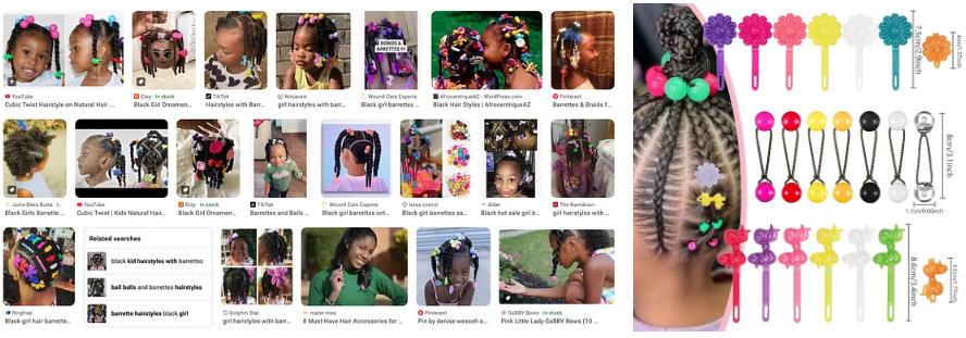 左:谷歌搜索結(jié)果;右:待售的發(fā)飾配件