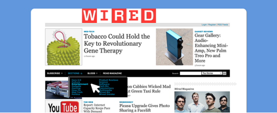 《連線》雜志的界面和靜態(tài)菜單(2008年)