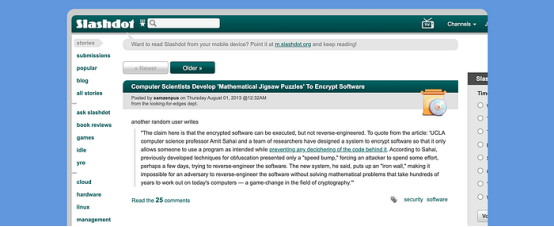 Slashdot(約2013年)在科技新聞?wù)路皆O(shè)有高度線程化的討論,其審核和 karma(聲望)系統(tǒng)在塑造用戶互動和評論質(zhì)量方面扮演了核心角色