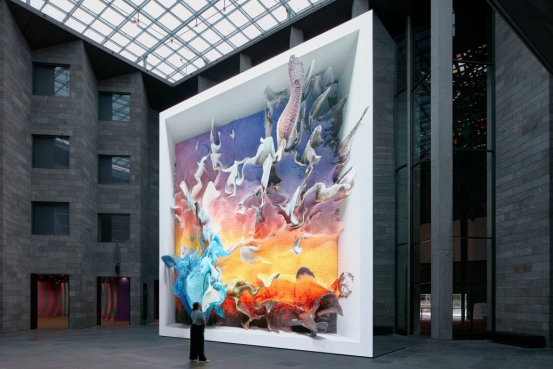 還有雷菲克·阿納多爾(Refik Anadol)。他的[量子記憶](Quantum Memories,2020年)受澳大利亞維多利亞國家美術館委托,是一個數據雕塑,通過量子隨機性和觀眾互動處理了2億張圖像。它是在谷歌人工智能量子團隊的協助下創建的,這種合作也影響了他的其他沉浸式裝置,包括2021年的《機器幻覺——自然之夢》(Machine Hallucinations — Nature Dreams)。