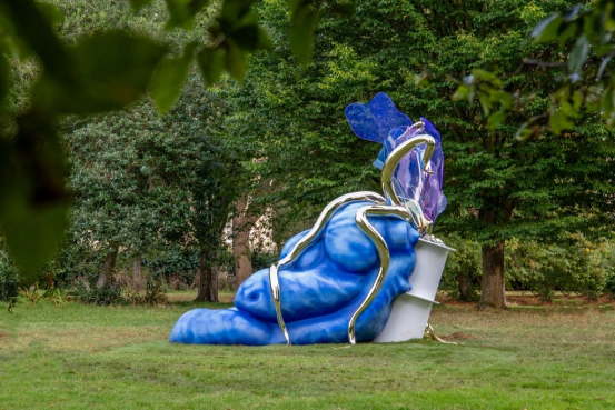 2024年,希尼為倫敦弗里茲雕塑展(Frieze Sculpture)在攝政公園放置了一個量子賽博格(cyborg)。[Ent-(非塵世歡愉)]部分像是生物形態的藍色粘液塊,部分像是讓人聯想到量子計算機機身的金屬艙。在野外遇到這種奇怪的結構,仿佛來自量子世界的實體與我們自己的世界糾纏在了一起。恰如其分的是,這個形態看起來完全粘滑。