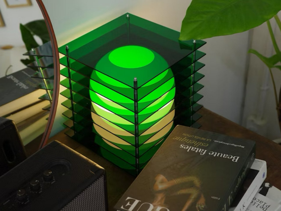 L?p 燈通過精湛的光學工程,創造了懸浮燈泡的迷人錯覺,賦予臺燈全新的意義。這款越法合作的產品圍繞中央光源層層疊疊彩色亞克力板,產生根據觀看角度動態變化的深度效果。材料與光線之間美妙的相互作用將你的工作空間轉變為畫廊般的環境,功能性的照明由此成為互動藝術。