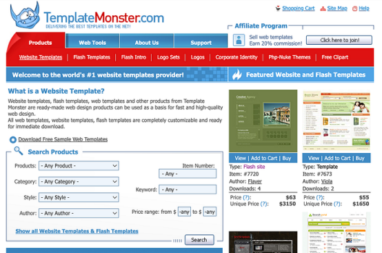 Template Monster 是我們靈感的圣杯。花上數小時瀏覽“商業”、“個人”和“娛樂”等類別,每個模板都比上一個更精美。說實話,我甚至不確定那個網站現在是否還存在,但它塑造了整整一代設計師,那時我們認為漸變和陰影就是最高級的。
