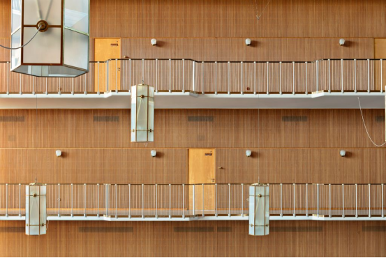 奧胡斯市政廳擁有全系列的桌椅、固定柜臺、木質墻板、標識、時鐘、照明等,所有這些均由雅各布森、莫勒和韋格納合作設計