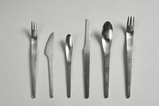 由喬治·杰生(Georg Jensen)生產的AJ餐具,旨在提供一種負擔得起且功能性的傳統銀質餐具替代品