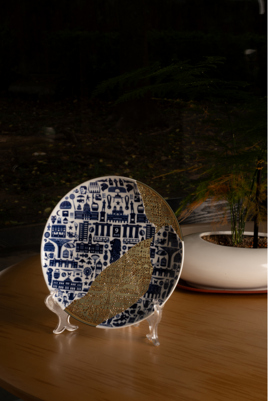 設計工作室 Supermama 借鑒了日本傳統的金繕修復藝術,并提出了一個問題:如果碎片缺失了怎么辦?他們的金繕2.0技術使用鍍金的3D打印樹脂進行重建,而不僅僅是修復。算法生成的生長圖案和數字紋理取代了丟失的陶瓷碎片,而骨架狀的網格結構則將一切固定在一起。他們修復的“ONE Singapore 2024”盤子和采用生成式蠟染圖案的花瓶,展示了傳統工藝與尖端技術如何成就美麗的破碎,甚至更完美的回歸。
