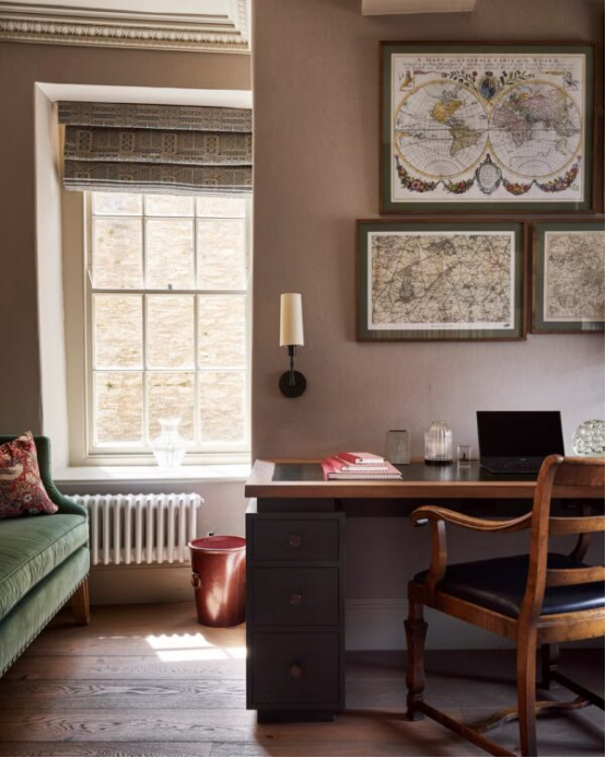 棕色沉穩的特質使其成為家庭辦公室的絕佳選擇,專注與寧靜在此至關重要。一張胡桃木書桌或巧克力色調的儲物單元能立刻提升精致感,并穩住整個空間。將棕色家具與中性色調墻面搭配,能確保空間既專業又溫馨。焦糖色的皮革辦公椅能在舒適與優雅之間取得完美平衡。你甚至可以通過配飾低調點綴,比如咖啡色的桌面收納件、棕色軟木板或深褐色的藝術畫。棕色提供了一個溫暖而穩定的背景,既能鼓勵高效工作,又能保持工作空間的時尚感。