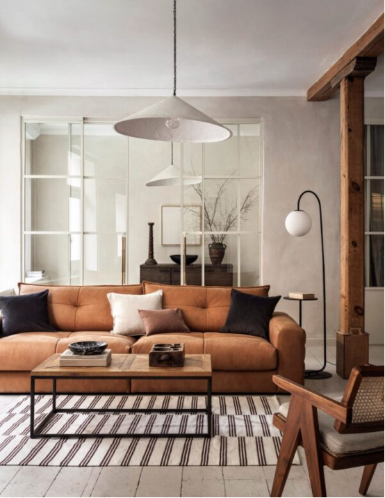每個房間都需要一個視覺焦點,而一件焦糖色的家具可以輕松成為主角。例如,一張焦糖色皮革沙發,在經典與現代之間取得了完美平衡。與深棕色不同,焦糖色更顯輕盈和百搭,易于與冷暖色調搭配。你可以用象牙色蓋毯增添柔和感,或用寶石色調的靠墊形成對比,制造戲劇性。焦糖色也非常適合用于點綴椅、腳凳甚至裝飾性地毯。將這種溫暖的色調置于設計的中心,能立刻營造出溫馨又別致的空間。