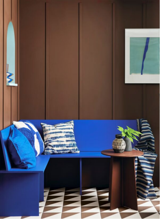 棕色不一定顯得傳統——它與現代色彩搭配能創造出清新又時髦的外觀。柔和的腮紅粉、灰藍色,甚至啞光芥末黃,與暖棕色調搭配起來都出奇地和諧。一件駝色沙發搭配鼠尾草綠墻壁,或摩卡色櫥柜配以啞光黑色五金,都能顯得別致而現代。這些出人意料的搭配讓棕色超越了其復古聯想,獲得了新的身份。關鍵在于保持色調的協調性,選擇兩到三種互補色,并通過紡織品、藝術品和配飾在空間中重復運用。突然間,棕色就成了精心策劃的現代設計的一部分。
