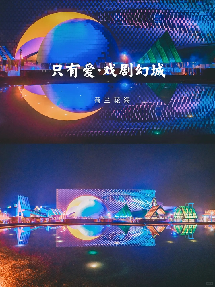 2020年開演的《只有愛》,則嘗試突破地域限制。位于江蘇鹽城大豐的荷蘭花海,占地約3000畝,由如月、如心、如花、如歌、如故、如意六大劇場組成,其中核心劇場——如月劇場最多可容納2400人同時觀演。