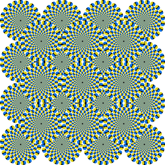 一種我們看不夠的視錯覺是那些看起來在移動但實際上卻是靜止圖像的錯覺。這些是所謂的生理光學錯覺的例子——它們是由大腦感官過度刺激引起的,因為眼睛看到太多的顏色、光、運動或維度而無法處理。