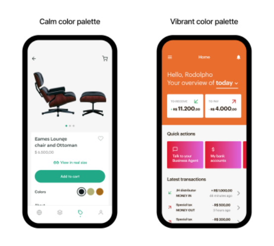 想象一個優雅的家具應用程序。設計師可能會選擇以柔和、低飽和度的藍色和綠色為主色調,并以柔和的大地色調點綴。柔和的藍色可以微妙地誘發平靜和安寧的感覺,與應用程序放松的核心目的一致。柔和的綠色可能喚起自然和幸福感,進一步強化平靜和心理清晰的主題。大地色系的棕色可以使視覺體驗更接地氣,創造一種穩定感和與自然世界的聯系。