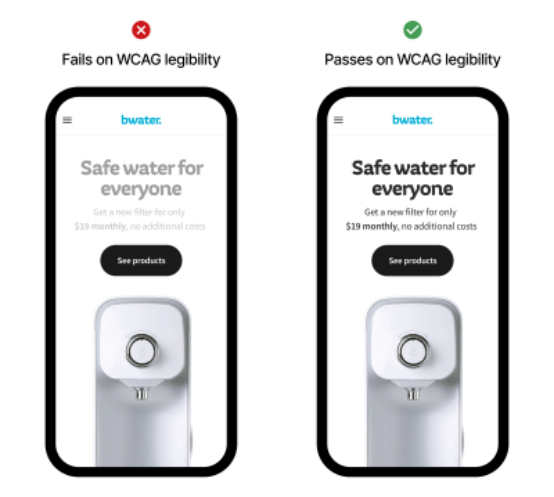 確保文本和背景之間以及交互元素與其周圍環境之間有足夠的顏色對比度,以滿足 WCAG 指南。有現成的工具可以檢查顏色對比度比率。