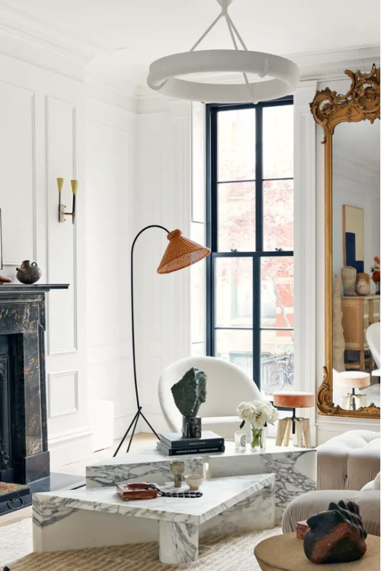 如果你空間里已有植物,一個聰明的親生物技巧是用鏡子倍增其效果。將鏡子放在綠植后方或側面,立即營造出更多植物的錯覺,同時放大室內光線。這不僅看起來蔥郁,還增強了你的生理所渴望的豐盈與活力感。有機形狀與色彩的反射刺激大腦,仿佛被雙倍的自然包圍,從而降低壓力、改善情緒。對于空間較小、地面或架面有限的情況,這也是一個實用的解決方案。一面鏡子,讓你的植物為你的健康付出雙倍努力。