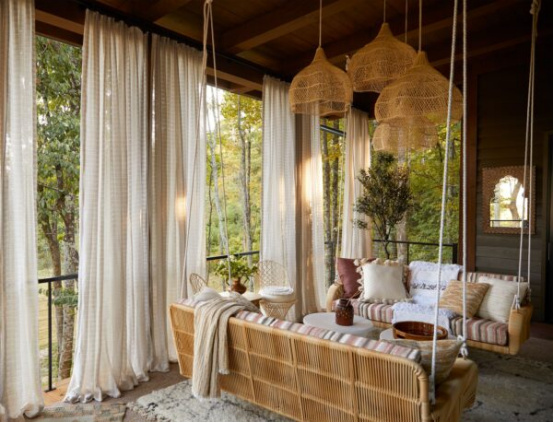 我們常忽略天花板,但它對空間的 grounded 感或開闊感扮演重要角色。在頭頂添加木梁、竹板或編織紋理,創造出 protective 天篷的感覺——宛如站在樹下。即使將天花板涂成柔和的天空藍或云般漸變,也能潛意識地帶來開闊感。這種 overhead 設計改變姿態與呼吸;你的身體既感到庇護,又感到振奮。通過將注意力向上引導,天花板不再只是空白表面,而成為親生物特色,重新連接你在戶外找到的保護與廣闊之間的平衡。