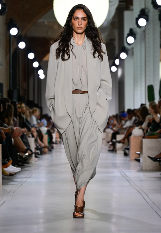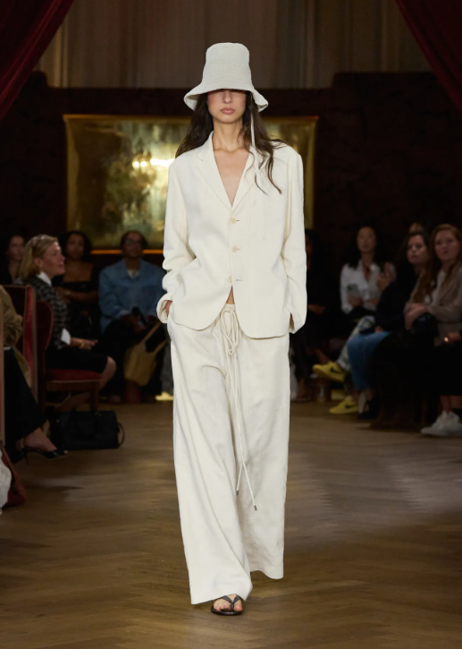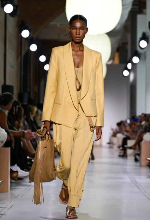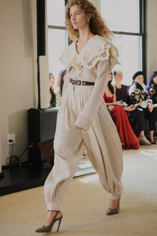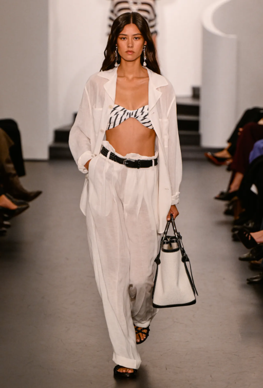 關鍵趨勢:?流線型極簡輪廓與輕盈層次定義本季。Altuzarra 和 Michael Kors 的氣球褲主導T臺,Khaite 的皮革軟跟鞋也呼應了這一輕松精致的風格。