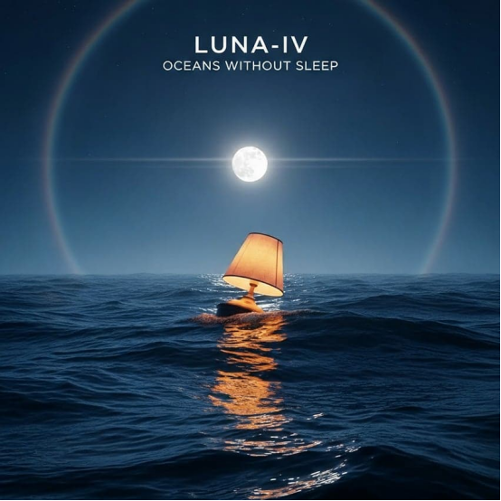 '夢幻流行;空靈、夜間、憂郁卻發(fā)光(流派與情緒)+?發(fā)光的滿月下無盡的夜晚海洋;一盞溫暖的床頭燈帶著亞麻燈罩像浮標一樣漂浮在翻滾的波浪中;無人(主體/場景)+?寫實電影靜幀;基于物理的渲染;超細致的水模擬;觸感材質(漣漪海水、玻璃燈泡、亞麻紋理)(藝術風格/媒介) + 柔和的月光藍和銀色帶有石板黑陰影;珍珠般的高光;溫暖的琥珀色燈芯形成對比; subtle violet底色(調色板)+?低水位線視角帶有 slight telephoto compression;地平線在上三分之一處;燈偏移在三分法上;充足的負空間天空;波浪上強烈的明暗對比(構圖/視角)+?長曝光月暈和星光;柔和的光暈;精細的海霧和輕霧; delicate lens flare;輕柔的膠片顆粒;夢境、失眠和寂靜危險的主題——超現實但可信(特殊效果/主題)+?文字:“LUNA -IV”位于中上方,“OCEANS WITHOUT SLEEP”直接在其下方,較小;優(yōu)雅的極簡無襯線或精致襯線(例如Suisse Works),大寫,白色或珍珠銀,5–7%邊距,清晰字間距,無重陰影(文字元素)。'