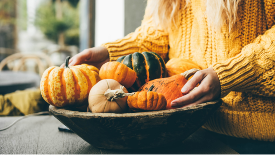 “相反,選擇 3-5 個擺放得當的南瓜,采用陶瓷、天鵝絨或玻璃等不同材質,混合鼠尾草綠和奶油色等顏色,而不是刺眼的橙色。”