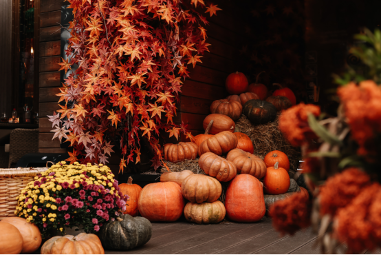 在前門廊塞滿干草捆、稻草人、巨型南瓜堆和玉米稈,會創造出混亂、令人無所適從的展示效果,看起來“俗氣又沒品味”。堅持最多 2-3 個關鍵焦點;或許可以是一個美麗的花環、臺階旁不同大小的南瓜和優雅的燈籠。