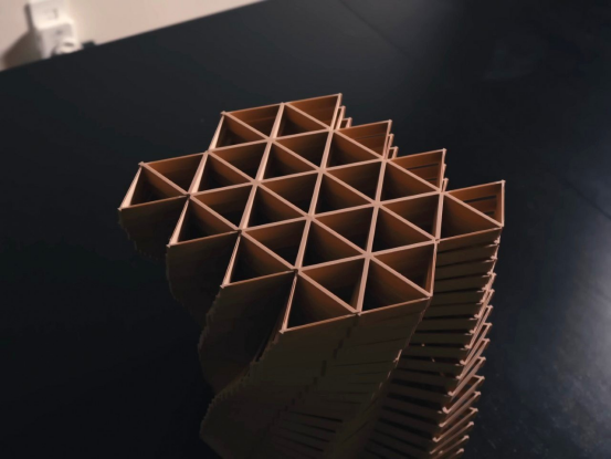 盡管這個版本用打印材料替代了雪松,它仍通過復(fù)雜的觸感、靜謐的對稱性以及迷人的光影游戲,保留了 Kumiko 的靈魂。每個三角單元捕捉高光、投下柔和的陰影,形成隨觀看角度變化的動態(tài)表面。近看時,你的手指會不由自主地想跟隨起伏與溝槽觸摸;退后一步,網(wǎng)格則化為一片編織般的圖案與節(jié)奏。可免費下載并無限定制,這款3D打印 Kumiko 將古老工藝與現(xiàn)代可及性融為一體。它證明,紋理不僅可觀,更可感——哪怕是以0.2毫米的層次逐層構(gòu)建而成。