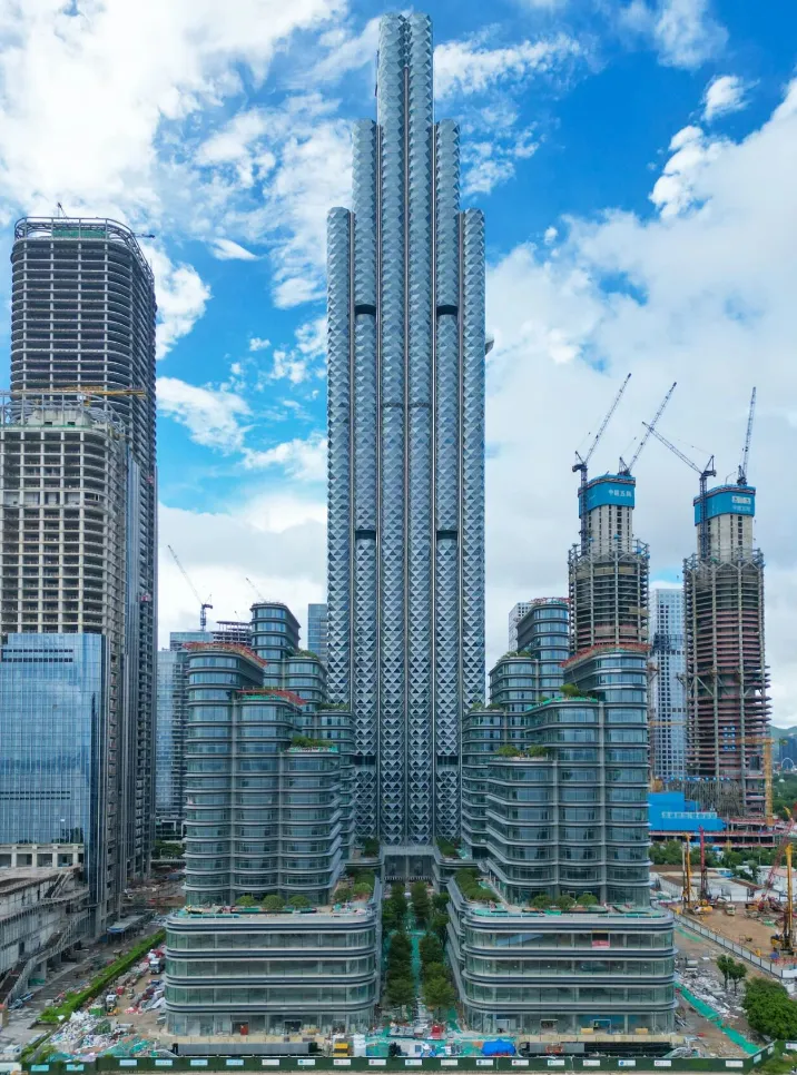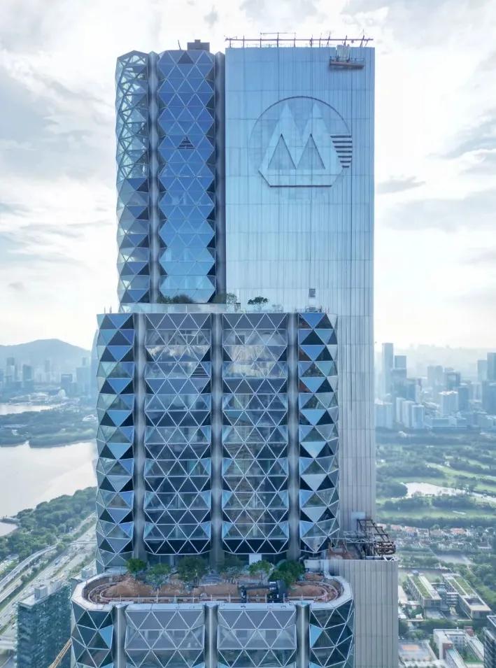 目前,招商銀行全球總部大廈的幕墻工程已經正式封頂,最后一塊不銹鋼板塊在388米高空精準安裝到位,招商銀行的logo也清晰可見,目前內部精裝修和機電設備調試已進入收尾階段,預計2025年下半年可以正式交付使用。