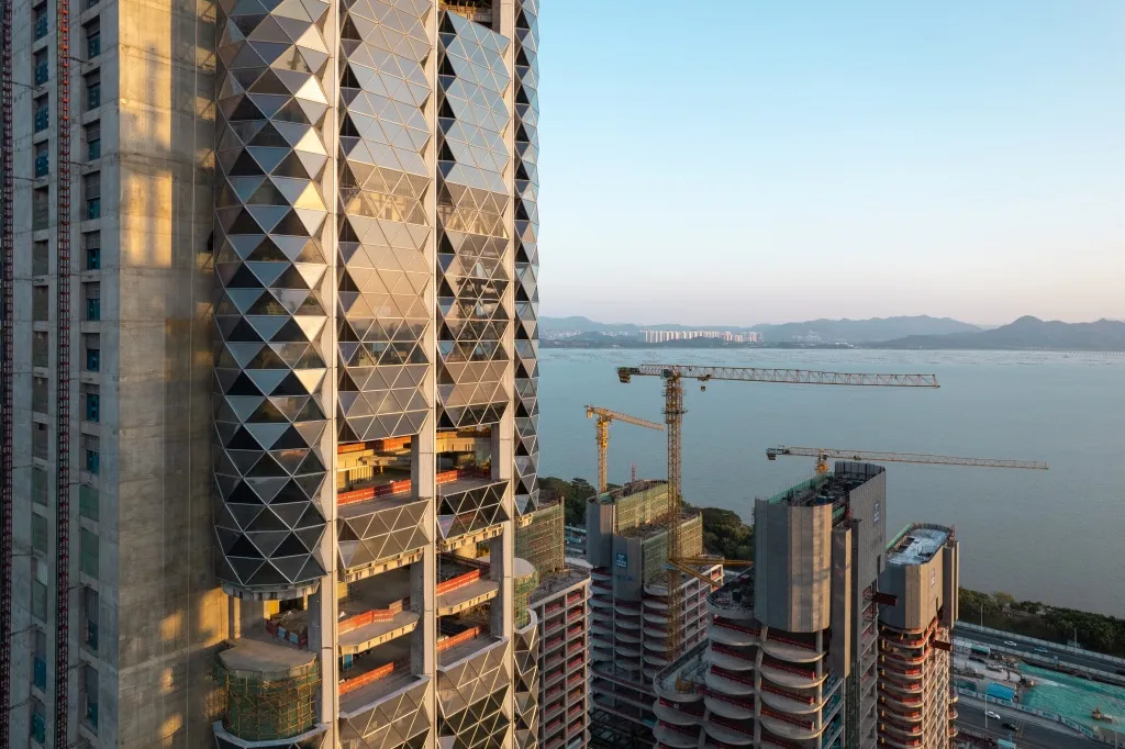 由gmp Architekten設計的廈門國際銀行總部大廈位于廈門主島金融中心,緊鄰大海,預計2026年10月竣工,如今基本雛形已現。