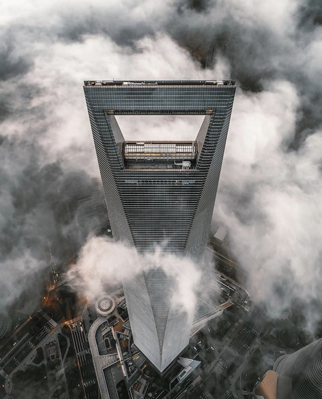 最早建成的金茂大廈于1994年開工,1999年建成。頂端尖頂形似注射器針頭,實際上是SOM設計事務所研究了2000多座佛塔之后得來的靈感,融合了中國的寶塔元素,大樓整體的獨特造型和層層疊疊的設計,也很像是中國古代兵器“狼牙棒”,象征著堅固與安全。