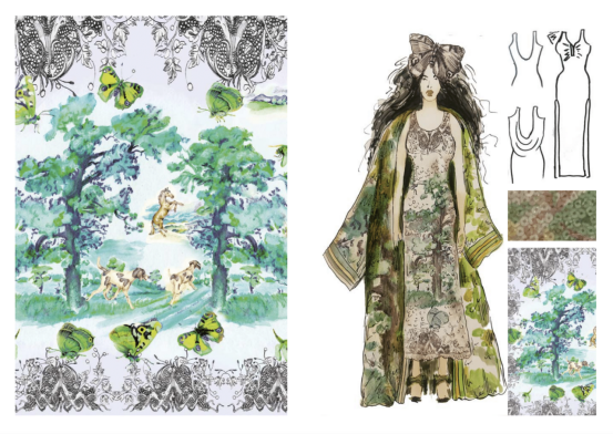 "印花紡織設(shè)計(jì)真正是通過工業(yè)革命發(fā)展起來的,在此之前,服裝上的圖案和圖像是通過織造和刺繡實(shí)現(xiàn)的,"諾丁漢特倫特大學(xué)時(shí)裝、紡織品和針織品系主任兼時(shí)裝與紡織品研究中心主任 Amanda Briggs-Goode 教授說道。"銅版印花是第一個(gè)發(fā)明,用于制作茹伊印花布,即將圖像雕刻在銅板上,雕刻線條的不同深度在單色中創(chuàng)造出色調(diào)質(zhì)感。這種方法被工業(yè)化,印版變成了滾筒,進(jìn)而發(fā)展為滾筒印花。"