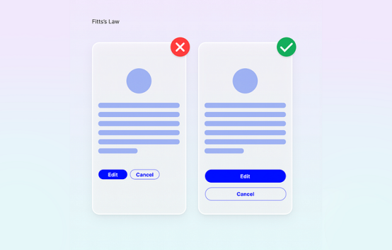 當(dāng)目標(biāo)更大、更近時(shí),用戶選擇目標(biāo)的速度更快,這就是為什么像行動(dòng)召喚按鈕這樣的關(guān)鍵界面元素被設(shè)計(jì)得更大、更醒目且易于觸及。