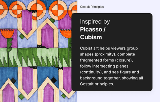 我們會(huì)本能地通過(guò)接近性和相似性對(duì)元素進(jìn)行分組,補(bǔ)全不完整的形式,跟隨線條和曲線,并區(qū)分圖形與背景。