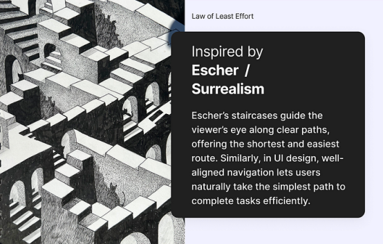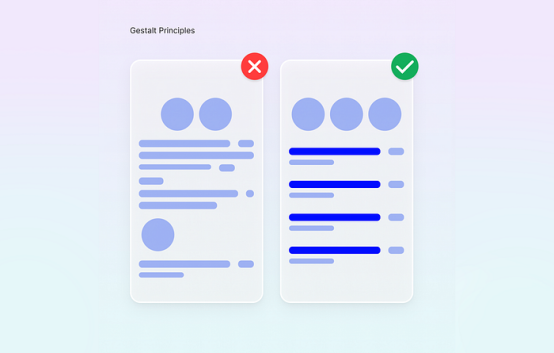 界面設(shè)計(jì)將相關(guān)的按鈕、圖標(biāo)或文本分組(接近性),對(duì)相似元素使用一致的顏色、形狀和排版(相似性),讓用戶在心理上補(bǔ)全布局(如漸進(jìn)式加載指示器)(閉合性),引導(dǎo)視線沿著對(duì)齊的形態(tài)和流線移動(dòng)(連續(xù)性),并將主要內(nèi)容與背景分離(圖形-背景關(guān)系)。