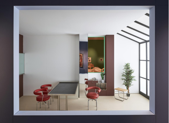 圣敘爾比斯廣場公寓工作室房間復原,內有「可伸縮桌」(1927年,巴黎蓬皮杜中心國家現代藝術博物館-工業創造中心)和「旋轉扶手椅」(1927年,倫敦維多利亞與阿爾伯特博物館)。這些椅子現已成為Cassina收藏的一部分。