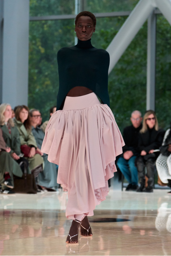 裁縫自由的理念在本季系列中反復(fù)出現(xiàn):在菲拉格慕,馬克西米利安·戴維斯借鑒了1920年代解放性的著裝規(guī)范("那是女性創(chuàng)造新女性氣質(zhì)的時刻……是對自由的慶祝,對自我的重拾");而在Bottega Veneta,露易絲·特羅特的首次系列則著眼于該品牌首位女性創(chuàng)意負(fù)責(zé)人勞拉·布拉吉翁(年輕時,她曾是安迪·沃霍爾的"工廠"成員),體現(xiàn)在其對色彩和紋理的表現(xiàn)力運(yùn)用上。"我在想象她的旅程——她作為一名意大利女性,一位典型的意大利女性,移居紐約的自由,"她在秀后說道。"這對她是一種解放。而這正是我想要捕捉的——一種解放的感覺。"