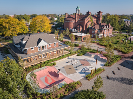 近年來經歷爆炸性增長的社區之一是"小村",這是市中心以西一個歷史上以住宅為主的小區域,在底特律自70年代開始的衰退期間幾乎空無一人。庫里斯和他的妻子兼商業伙伴JJ幫助啟動了該社區的復興,他們不僅是傳統的房地產開發商,更是投資于自己家鄉這座城市的著名藝術界人士。去年,他們在小村一座以前閑置的、大型羅馬式教堂內開設了Shepherd藝術中心。該建筑群的核心是一個用于臨時展覽的寬敞大廳,由布魯克林的建筑公司Peterson Rich Office精心改造設計。這個文化園區還包括一個改建為住宿加早餐旅館的教區住宅;一個名為"Father Forgive Me"的葡萄酒吧;一個由多產的本地事務所UNDECORATED設計的烘焙店;一個由托尼·霍克協助構思的小型滑板公園;以及一個展示本地已故偉大藝術家查爾斯·麥吉作品的雕塑園。