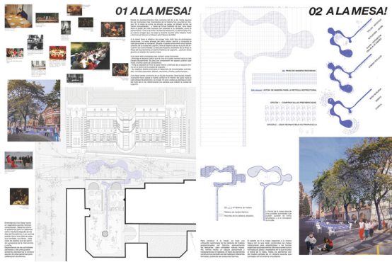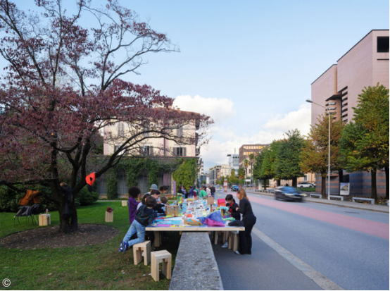 作為2022年孔森特里科藝術節的一部分,"來桌邊!"抓住了圍桌聚會的理念。其流動的形態創造了各種角落和壁龕,如同一個將被鄰里們征服的生命有機體。其活動安排包括大眾餐會、工作坊、會議和談話等。