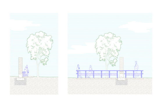 "餐室"是位于愛荷華州邦杜蘭特佩托卡湖的一個實驗性土筑展亭和公共用餐空間。作為一系列計劃中裝置的核心,其建造始于兩堵用當地沙、黏土和礫石建造的無鋼筋夯土墻。獨特的是,該設計包含了戰略性的侵蝕斷點,以確保墻體隨時間演變,讓自然和時間本身成為結構持續轉變的共同創造者。