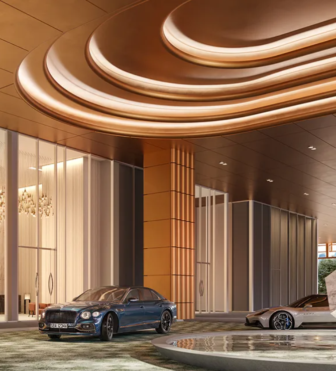 公共區域如大堂、餐廳、會議室等則注重現代感與藝術氛圍的融合,采用簡約而優雅的設計語言,確保每位訪客都能感受到 The Skywaters 獨特的奢華體驗。