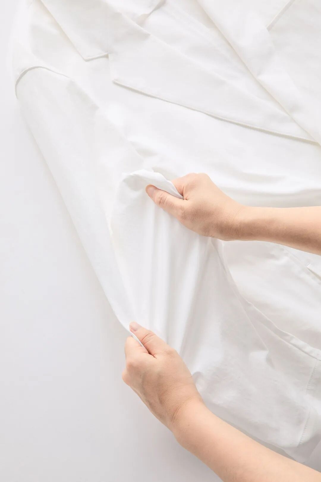 在醫(yī)療現(xiàn)場兼顧舒適穿著感與環(huán)境考量的醫(yī)用白衣。通過運(yùn)用AI進(jìn)行紙樣設(shè)計(jì)來減少布料浪費(fèi),實(shí)現(xiàn)輕盈且便于活動(dòng)的造型。以簡潔利落的輪廓貼近醫(yī)護(hù)人員的日常需求。