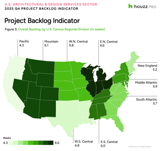 建筑與設計服務行業的項目積壓情況也因地區而異。