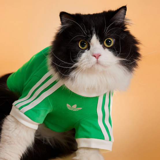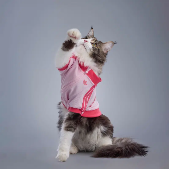 該膠囊系列將阿迪達斯經典三葉草原創設計重新詮釋,適用于寵物,將經典街頭服飾轉化為適合狗狗和貓咪的實用服裝。產品線包括防風夾克、填充背心以及受標志性田徑服啟發的單品,均飾有阿迪達斯標志性的三條紋和三葉草徽標。該系列還包含寵物背包和手袋,以及可供人類搭配的相應單品。