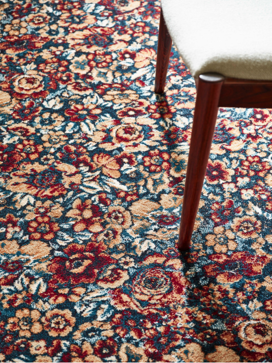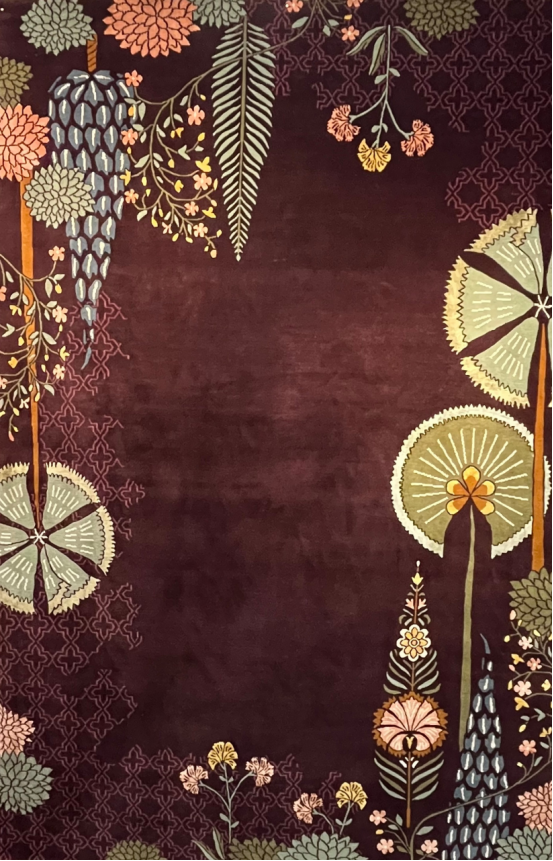 地毯設計師Agnella隸屬于Brintons集團,她也深入研究了維多利亞與阿爾伯特博物館的檔案,并從英國紡織公司Steiner & Co于1914年生產的一款面料中汲取靈感,創作出這款具有印花布感覺的羊毛地毯。