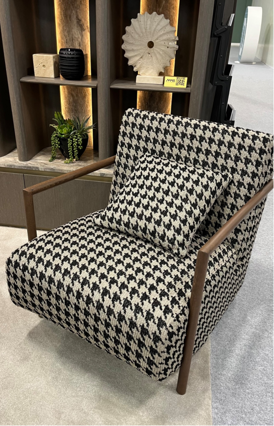 濃郁的巧克力色千鳥格紋提升了這款MassMob扶手椅的質感,為線條簡潔的設計帶來了溫暖。