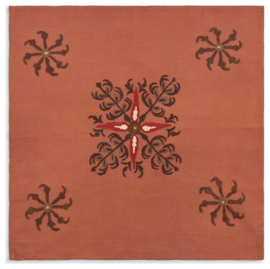 手工刺繡及其不完美之處,以及背面可見的線頭,將使用者與制造者聯系起來,為餐巾這樣的簡單單品增添了深度。