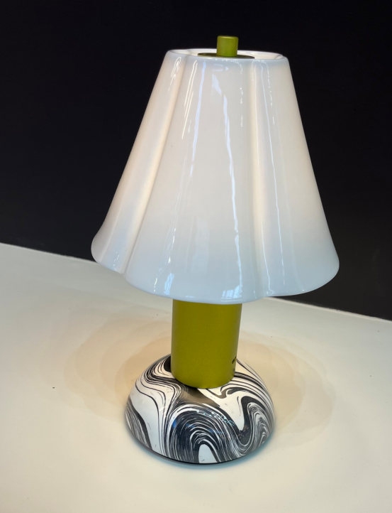 這款便攜燈的彩虹色燈柱坐落在大理石紋黑白色水轉印底座上,是對Original BTC的Blossom燈的全新趣味演繹。