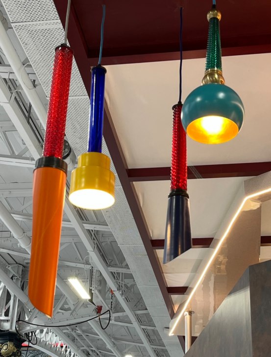 A Shade Above公司在展會入口附近的Swagger裝置,以巨型的彩色吊燈為特色,昭示了今年展出的眾多趣味燈具。