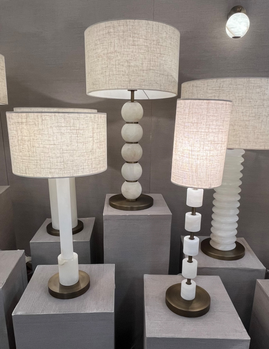 在Illuminati Lighting的展位上,雪花石膏燈座配備了松散編織圖案的織物燈罩,在保持極簡外觀的同時柔化了利落的線條。